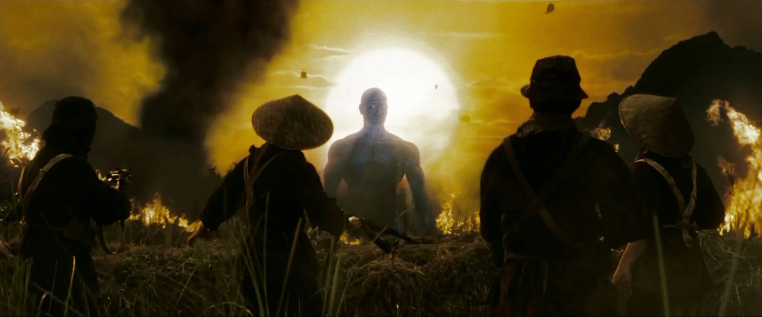 Dr. Manhattan is not merely a man accidentally transformed by science. He is science transformed into power, into myth, into a weapon. The United States government seized on his existence with calculated precision, turning him into a symbol of divine authority and nuclear dominance. His glowing blue figure became the face of victory in the Vietnam War. He ended the conflict in a matter of days. He’s the reason other nations hesitate to provoke conflict, the silent threat ensuring American hegemony.