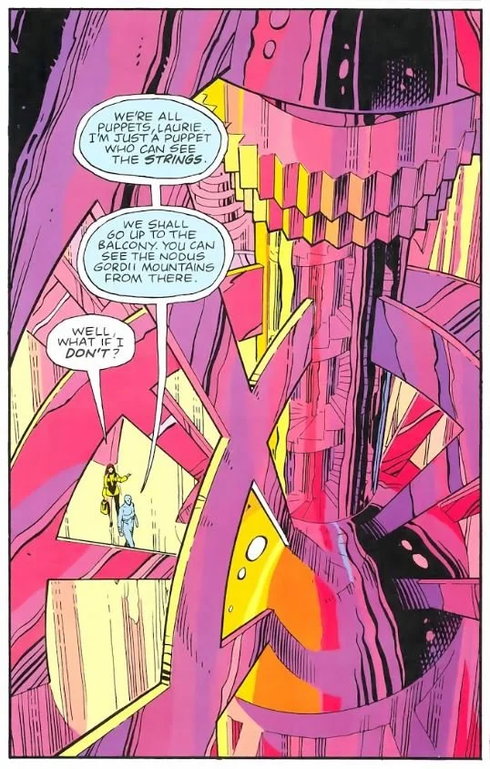 By merging the imagery of the clockmaker god with Laplace’s Demon, Alan Moore gives us a terrifying picture of existence. In this vision, even a god is just another gear in the great machine of time. God might have once set the universe ticking. But now, like the rest of us, he simply listens to it tick.