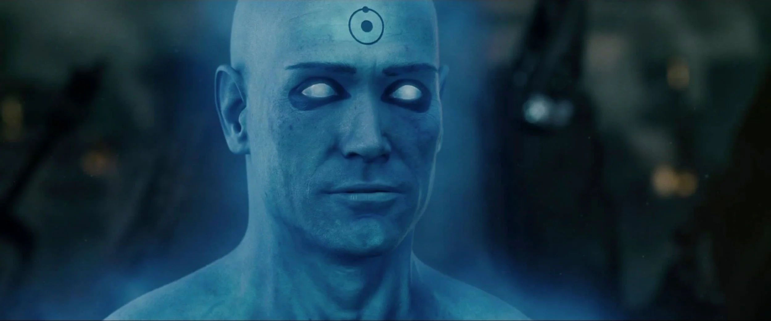 Dr. Manhattan is a direct allusion to the American "Manhattan Project" of the 1940s—the development and construction of the atomic bomb. Notable: the symbol of hydrogen burned into his forehead in 1960 with a flick of his own finger. The U.S. government gave him the code name "Dr. Manhattan" to evoke fear among America’s enemies through nuclear association.